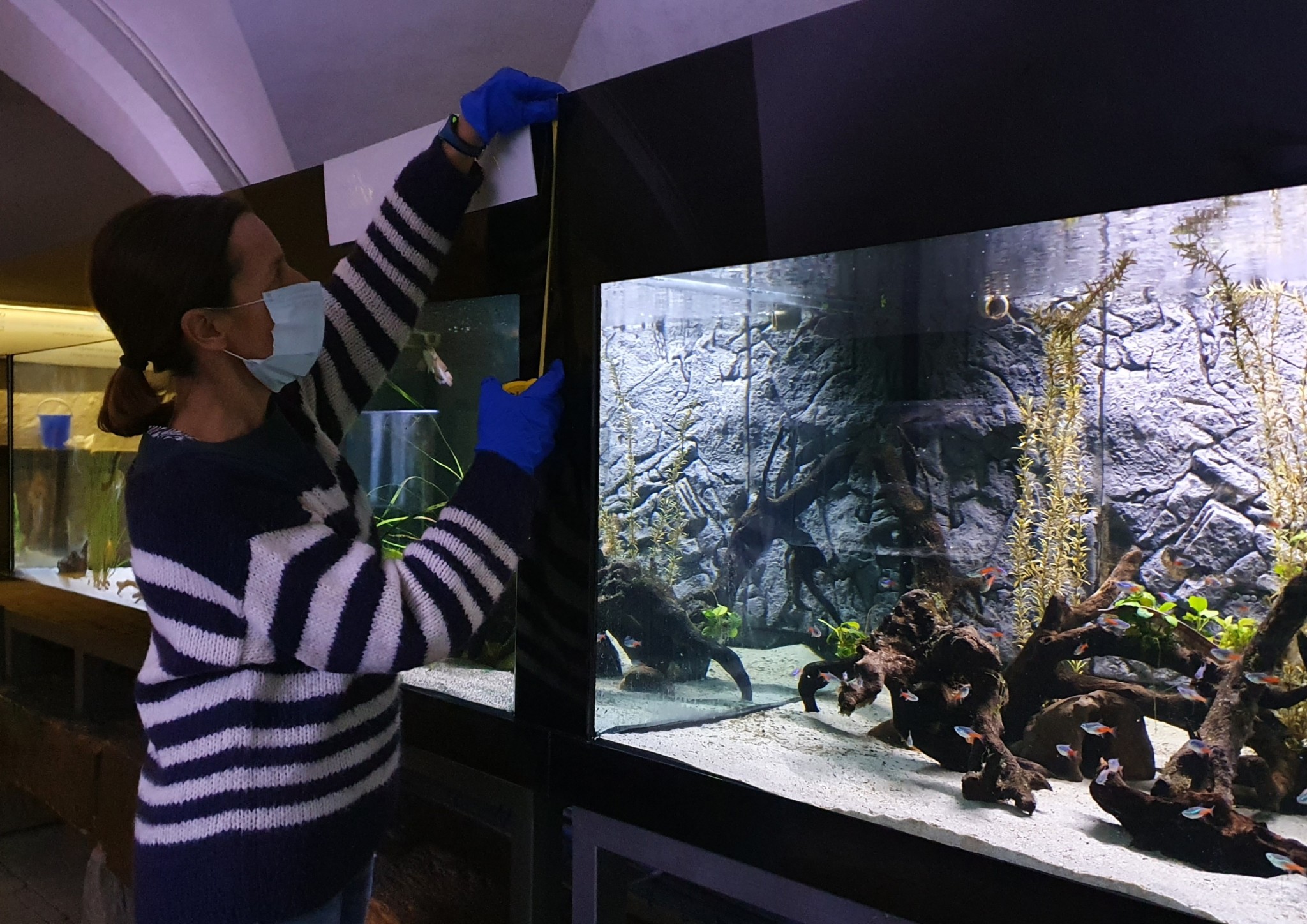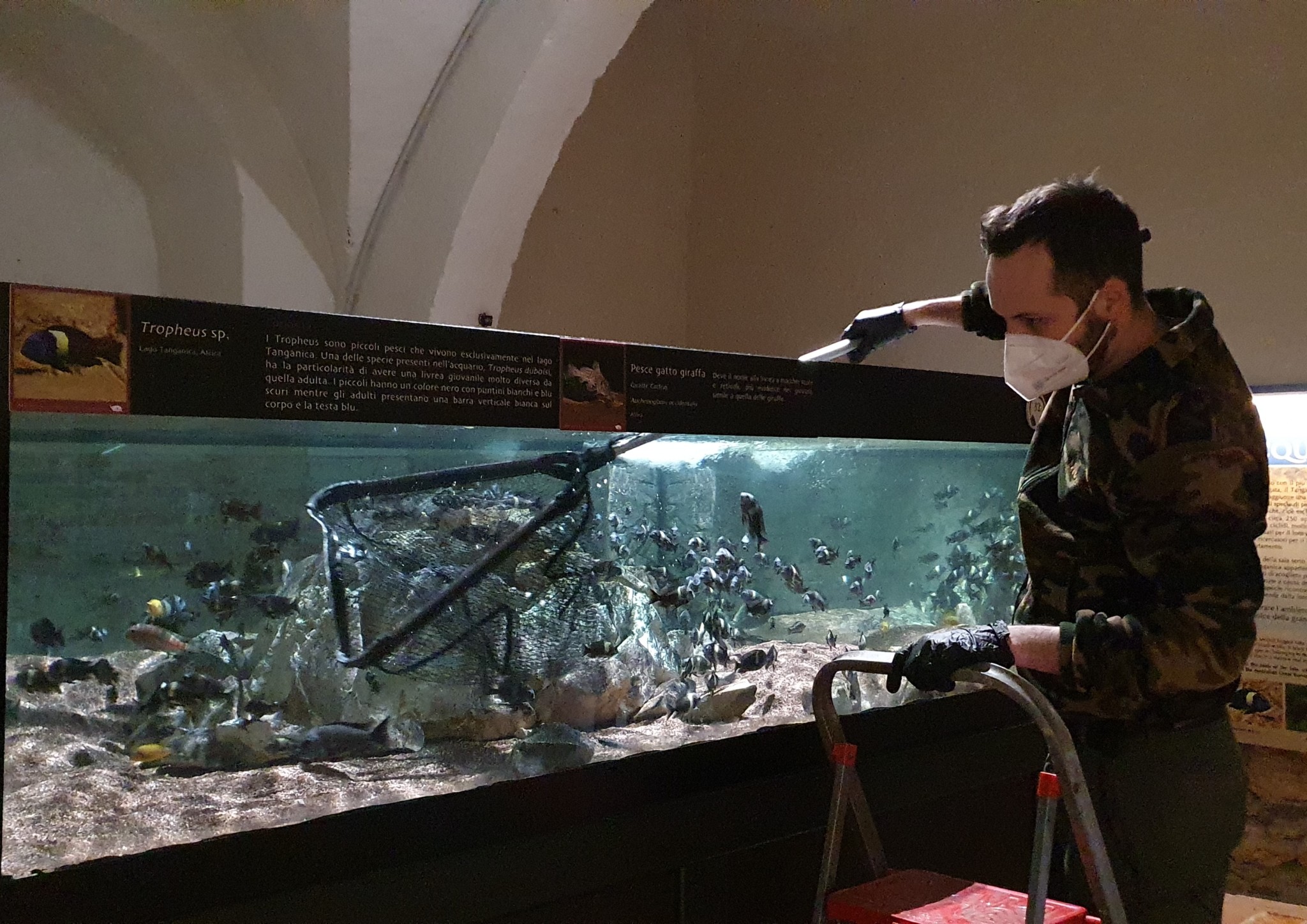 L’acquario del Museo, con centinaia di animali vivi, richiede una presenza costante per la cura e il benessere degli animali. Oltre alla consueta manutenzione delle vasche, il team che si occupa dell’acquario in questo momento sta lavorando intensamente ad un nuovo progetto di riallestimento. Il rinnovamento dell’acquario permetterà di mostrare gli ambienti di vita di molte specie di pesci e di evidenziare l’importantissima funzione che gli acquari possono avere per la conservazione e per l’educazione alla salvaguardia della biodiversità.