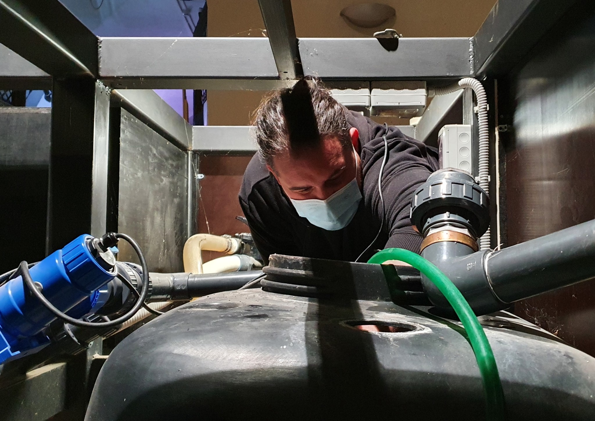 - Lorenzo Tarocchi mentre si occupa dell’allestimento delle nuove vasche dell’acquario.