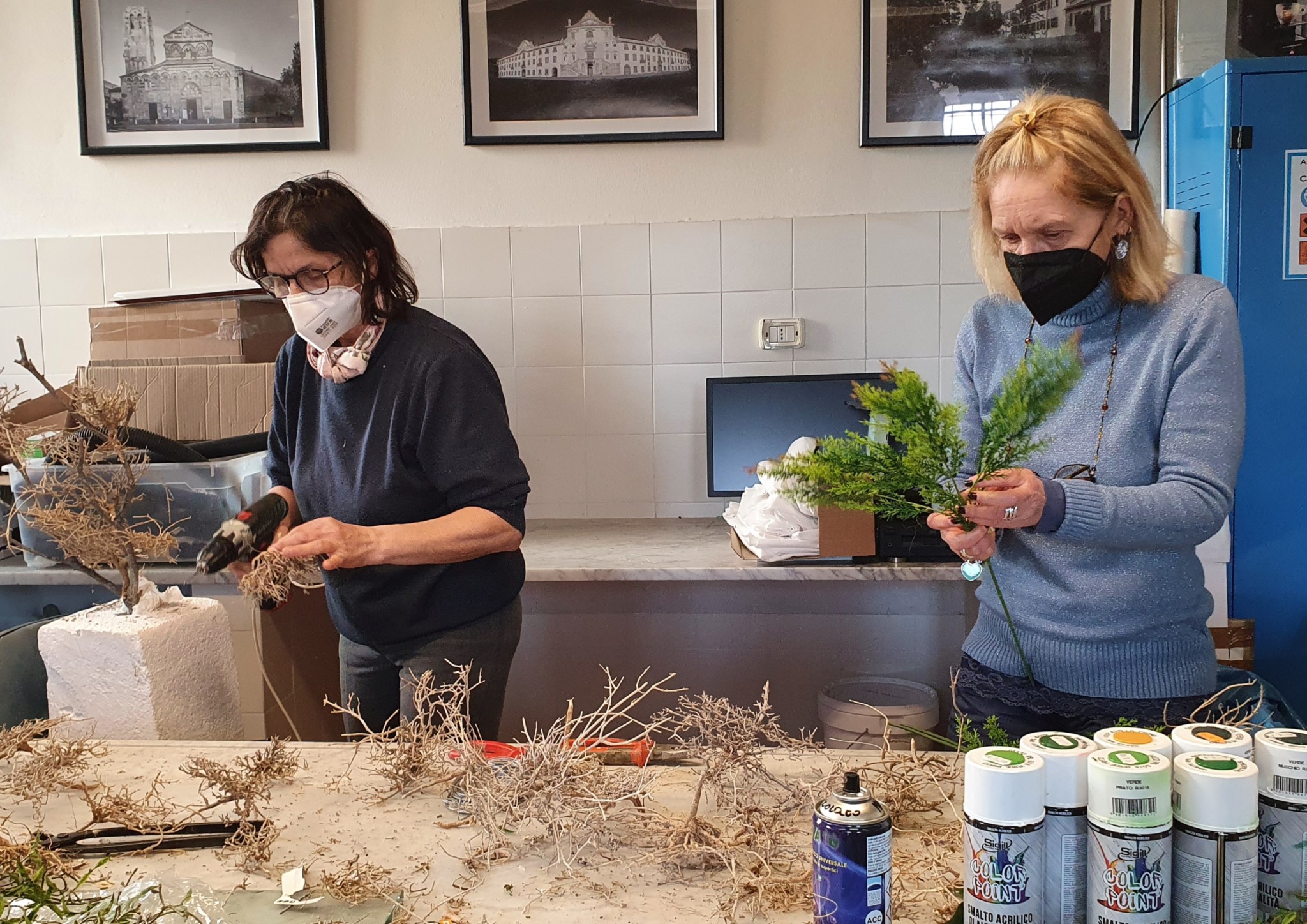 - Beatrice Consani e Monica Cappellini mentre preparano le piante che andranno nei diorami della nuova Sala della biodiversità.