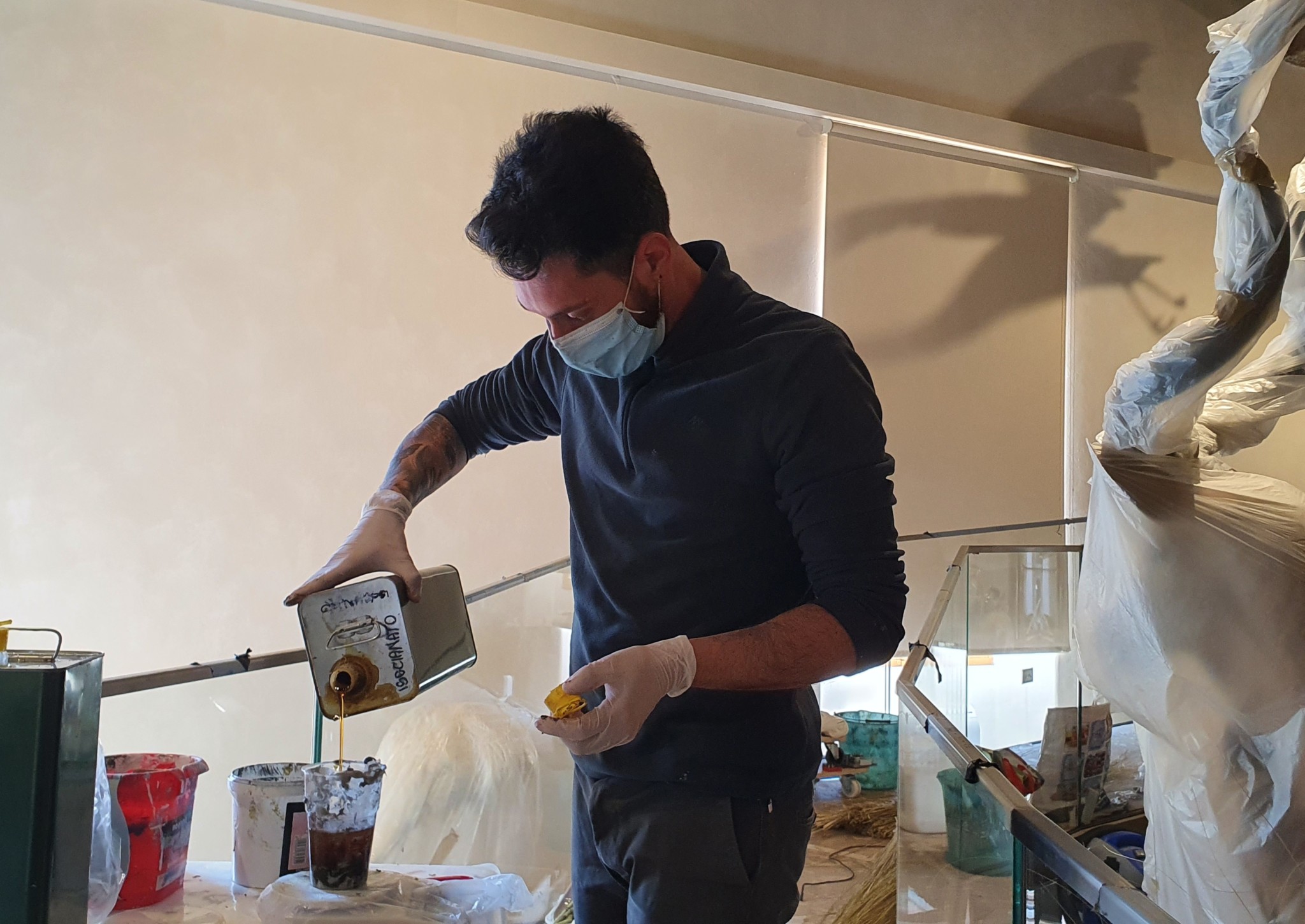- Maurizio Badame mentre lavora all’allestimento della nuova Sala della biodiversità.