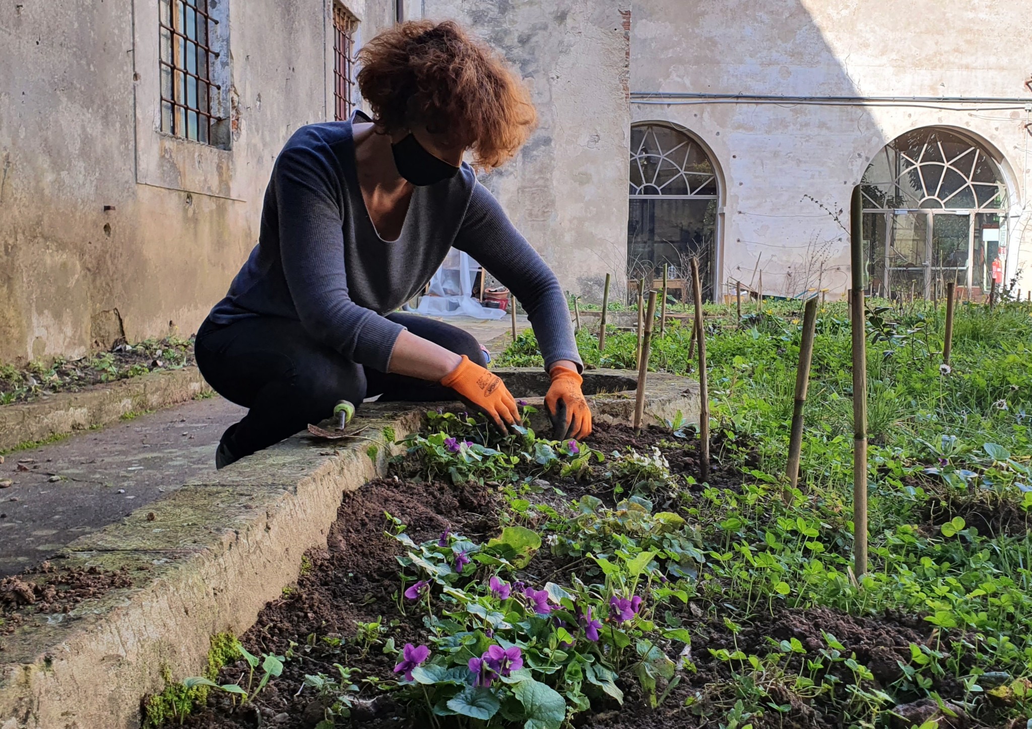 - Silvia Sorbi mentre lavora all’allestimento del Giardino del Monte Pisano.