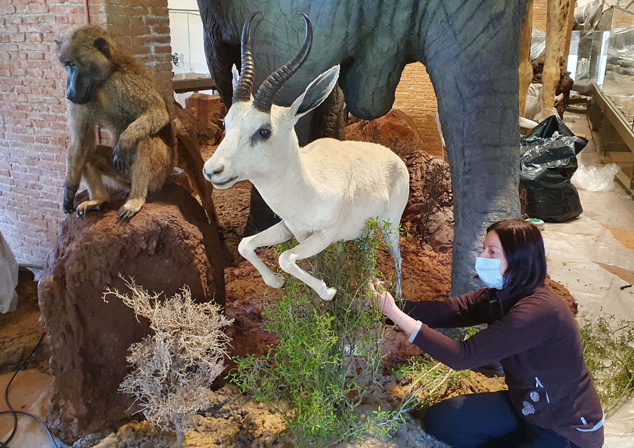 Le esposizioni sono forse il principale punto di contatto tra il Museo e i visitatori e la realizzazione di un nuovo allestimento richiede una progettazione in cui sono coinvolte molte professionalità. La parte più creativa di questo lavoro è affidata al team del restauro, che si occupa di immaginare e realizzare concretamente i nuovi allestimenti. Vi possiamo finalmente svelare una delle prossime novità: in questo momento il personale sta lavorando all’allestimento di una nuova sala dedicata alla biodiversità nel mondo, dove sarà possibile attraversare gli ambienti dei diversi continenti fino a trovarsi faccia a faccia con un elefante a grandezza reale!