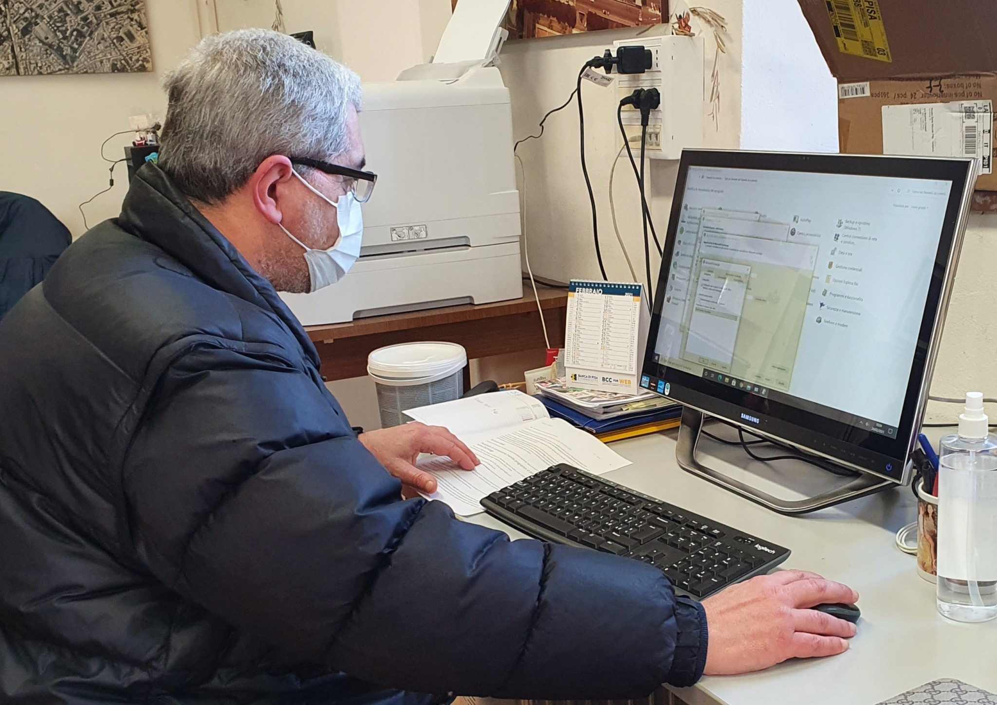 - Angelo Di Pede mentre predispone gli strumenti informatici per il personale del Museo.
