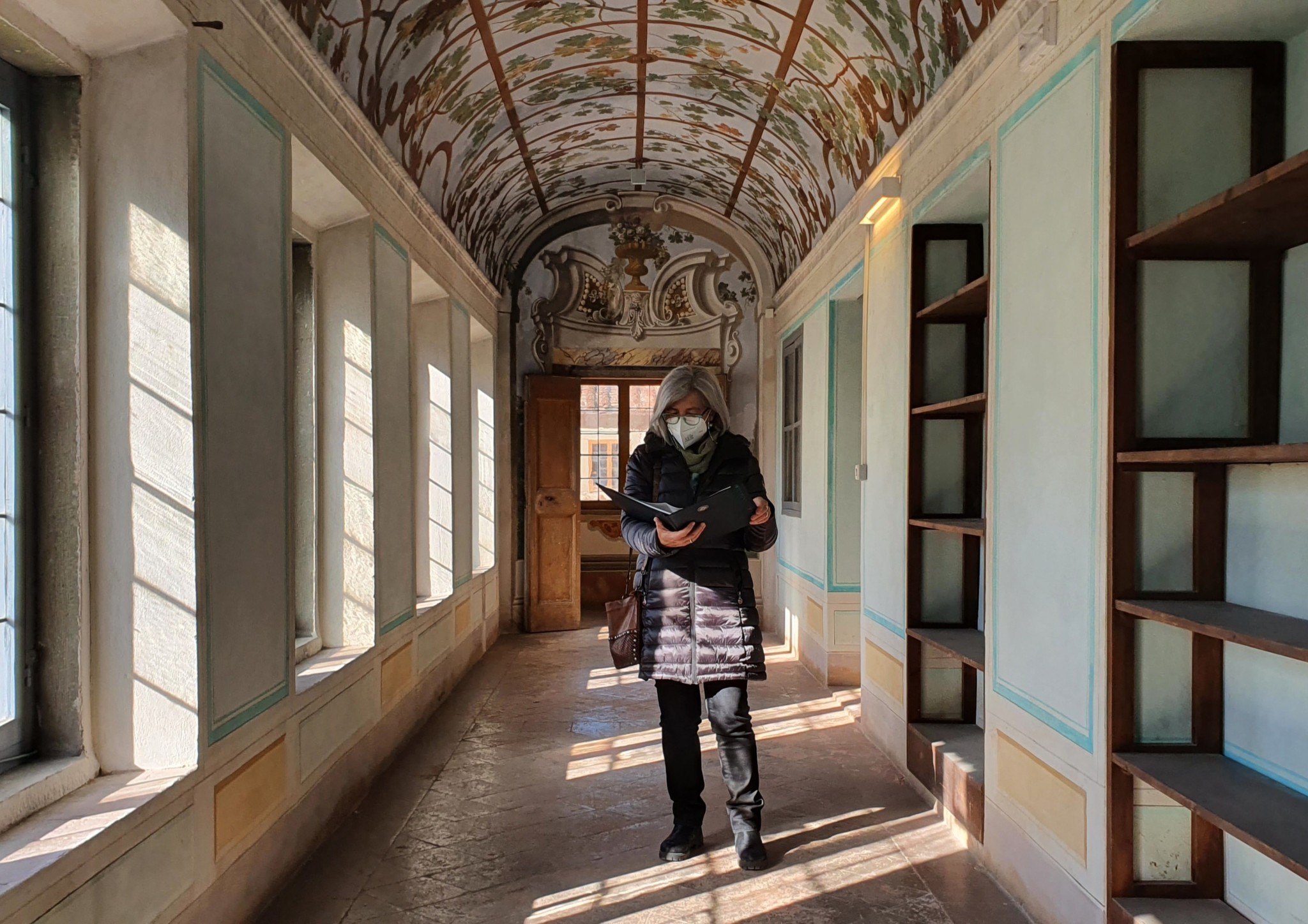 - Barbara Billi mentre coordina i progetti di restauro dei locali ad uso ufficio.
