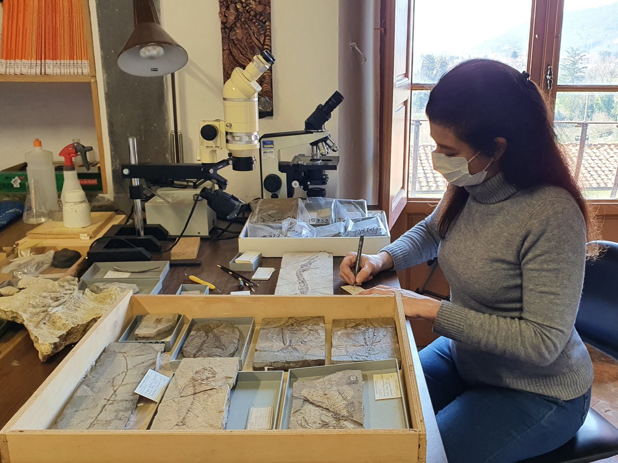 - Chiara Sorbini mentre cataloga reperti fossili (pesci di Bolca).