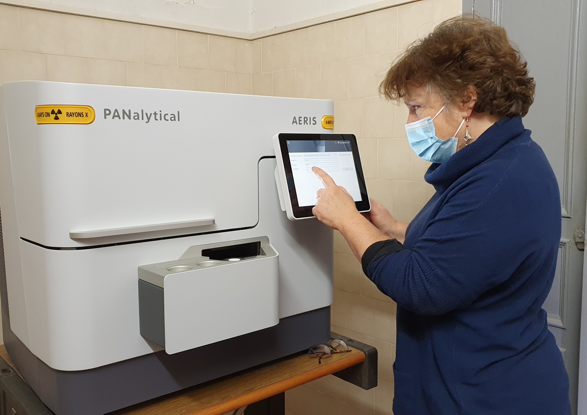 - Elena Bonaccorsi mentre analizza campioni in polvere di minerali con il diffrattometro a raggi X.