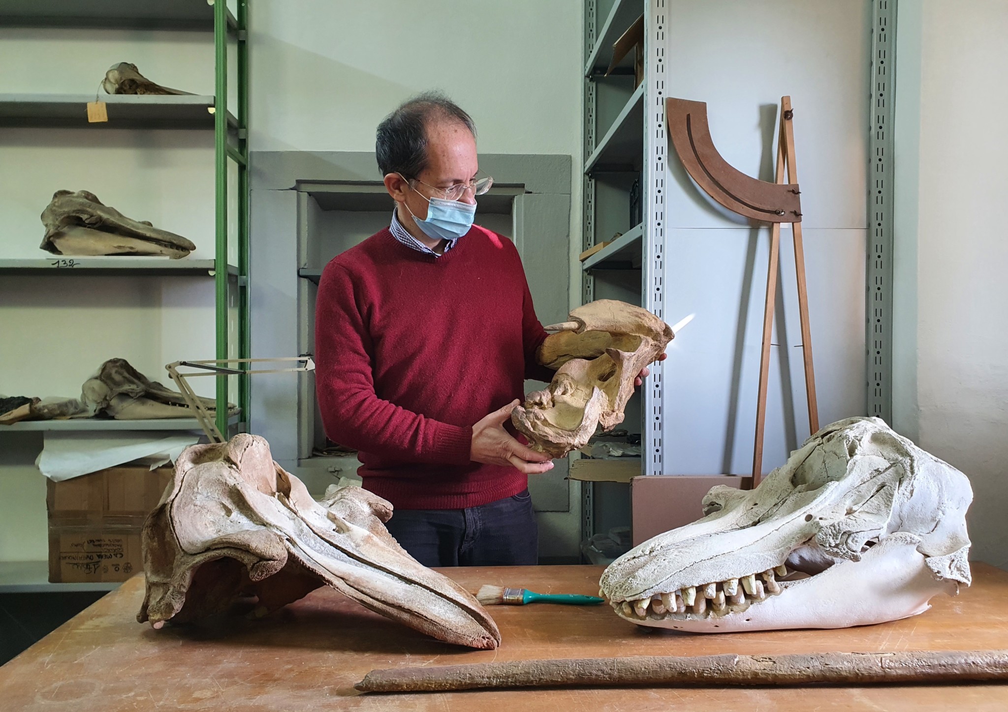 - Giovanni Bianucci, il vicedirettore del Museo, impegnato in uno studio comparativo di crani di cetacei fossili e attuali.