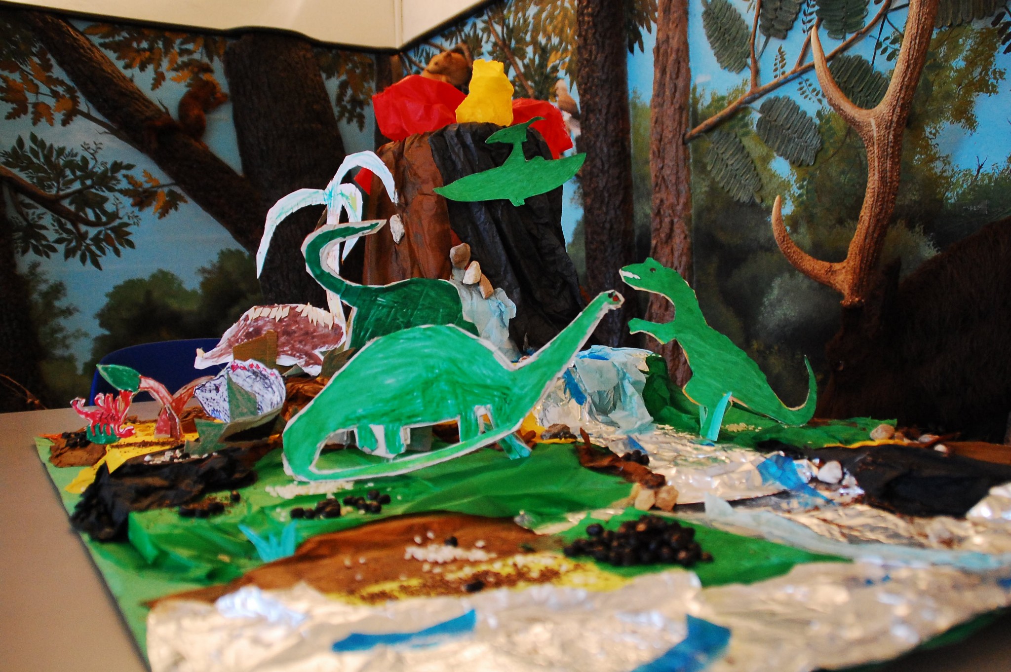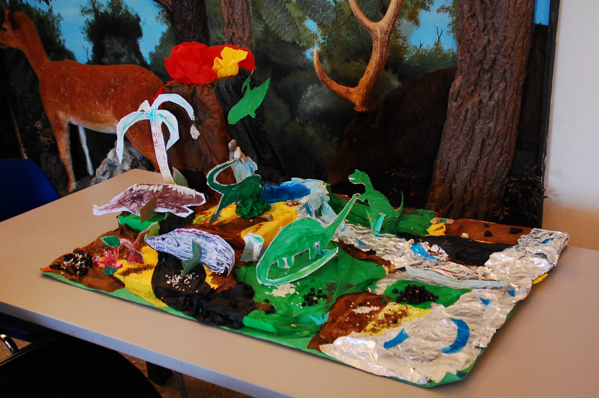 Oltre a conoscere tutto su questi esemplari: erbivori, carnivori, strategie di attacco e di difesa, forme riproduttive e abitudini, i bambini hanno giocato e lavorato con la fantasia e con le mani, ne è un esempio la realizzazione di questo fantastico plastico.