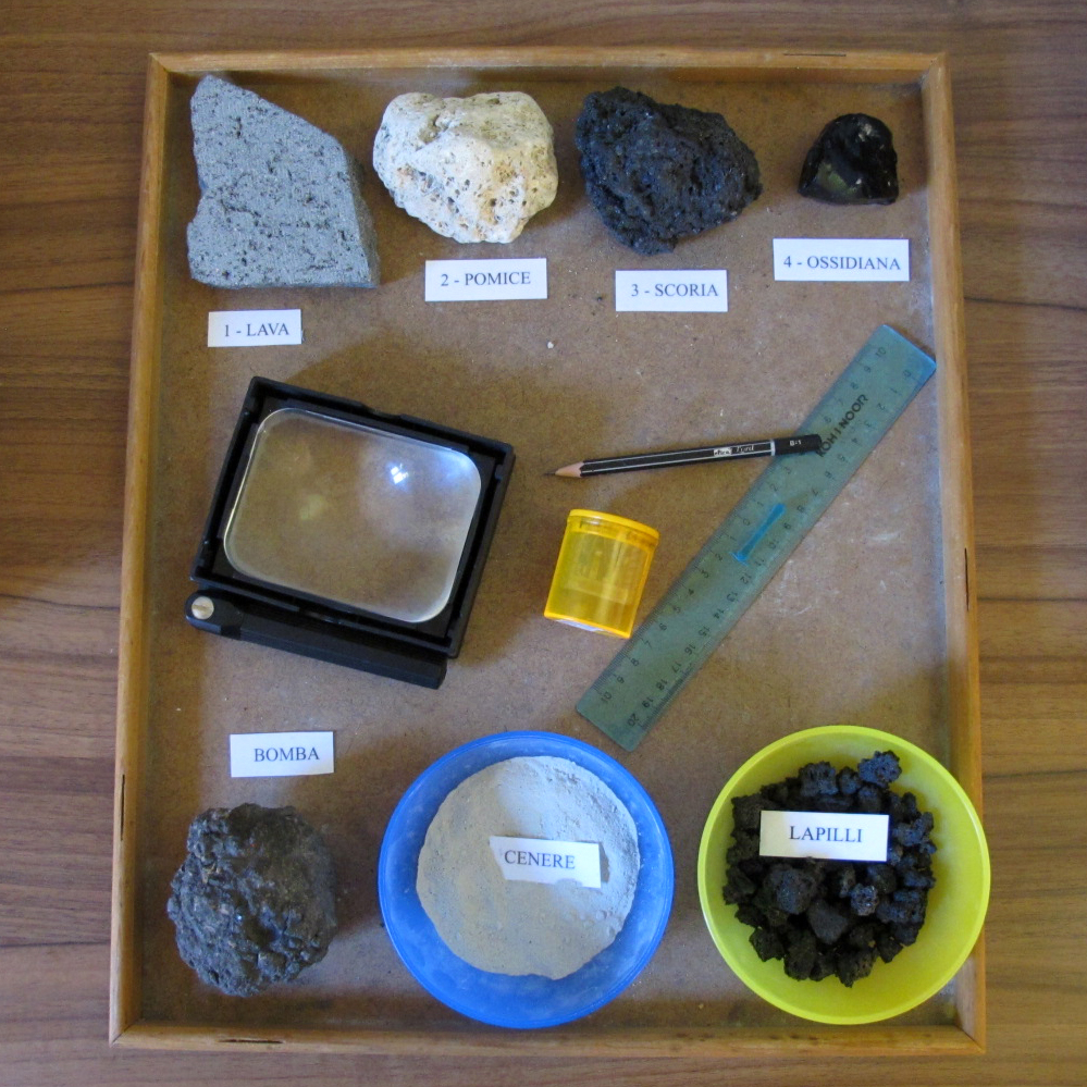 - Le rocce vulcaniche – osservazione e confronto dei principali prodotti dell’attività vulcanica (cenere vulcanica, lapilli, bombe, lava, pomici, scorie e ossidiane).