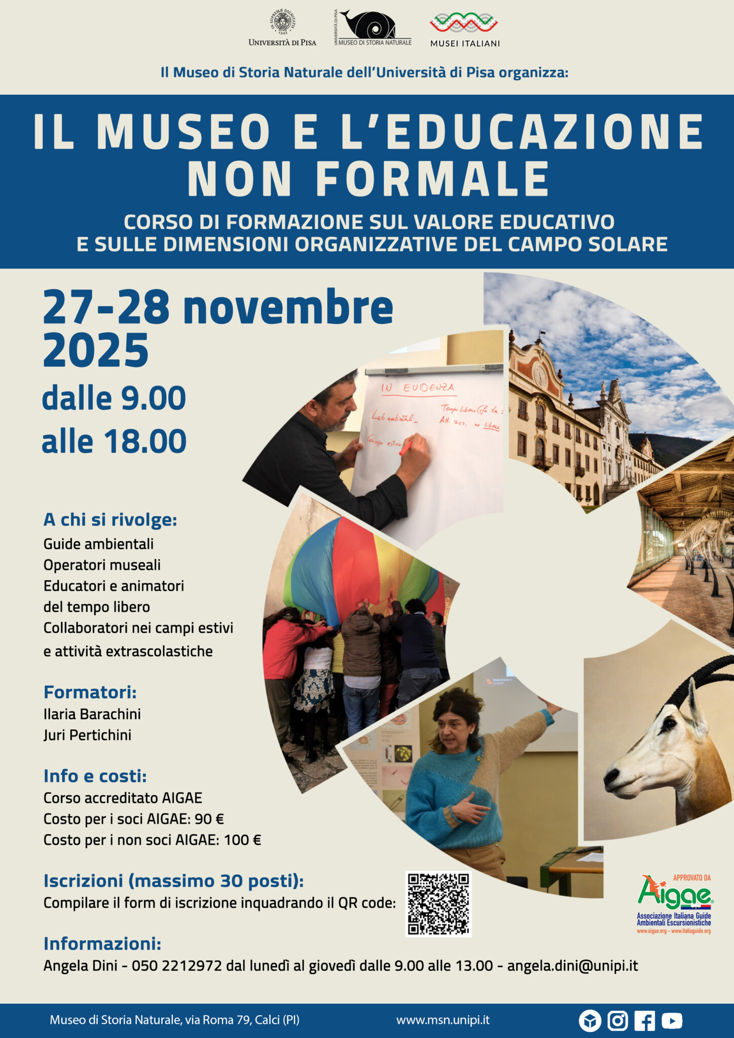 Nelle giornate del 27 e 28 novembre 2025, dalle ore 9.00 alle ore 18.00, al Museo si svolgerà “Il Museo e l’Educazione non formale“, un percorso formativo di due giorni che esplora il potenziale del museo come ambiente educativo attivo, offrendo strumenti teorici e pratici per progettare e realizzare un Campo Solare. In questo contesto, il centro estivo diventa un laboratorio di relazioni e crescita, dove l’apprendimento nasce dal dialogo, dall’esperienza diretta e dalla partecipazione condivisa. L’obiettivo è formare operatori capaci di creare esperienze significative, inclusive e coinvolgenti per bambini/e e ragazzi/e, valorizzando il contesto in cui si intende operare: museo, parco, città ecc. come luogo di apprendimento non formale e di crescita personale.
