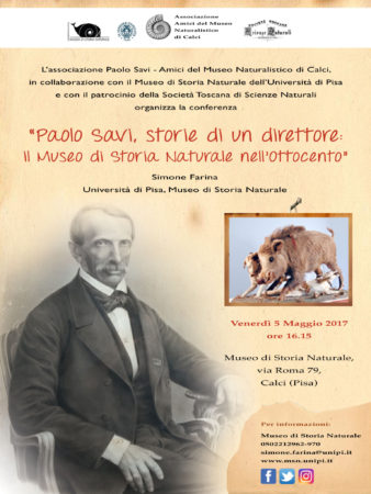 Venerdì 5 maggio 2017, alle ore 16,15, presso il Museo di Storia Naturale dell’Università di Pisa, avrà luogo una conferenza dal titolo “Paolo Savi, storie di un direttore: il Museo di Storia Naturale nell’Ottocento” a cura del dott. Simone Farina (Università di Pisa, Museo di Storia Naturale).