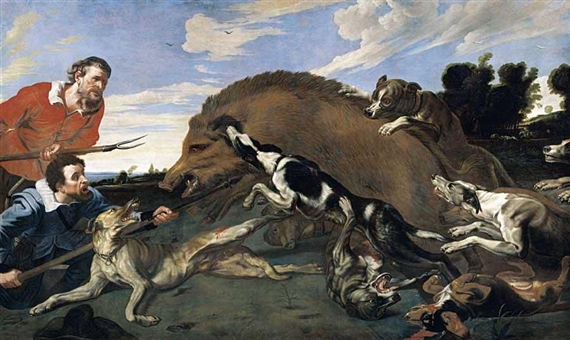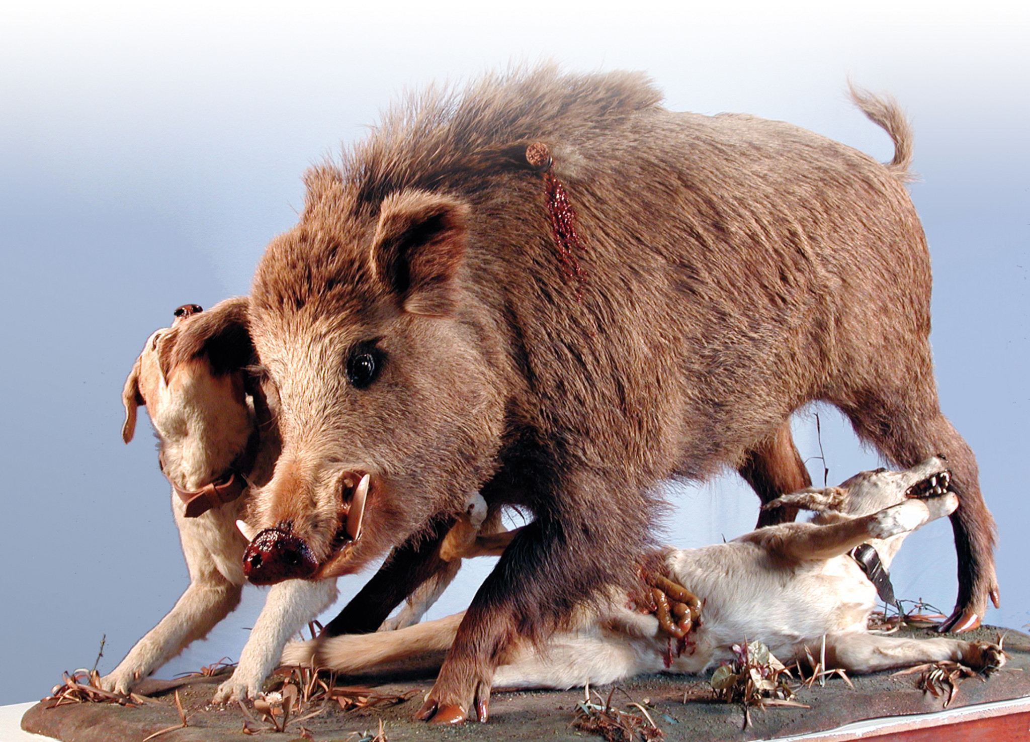 Tra i gruppi biologici realizzati da Paolo Savi, uno dei più noti è certamente quello della scena di caccia al cinghiale (quest’ultimo dono del Granduca di Toscana e proveniente dalla tenuta di San Rossore) realizzato nel 1825 e costituito da un grosso cinghiale ferito da una lancia che lotta con due cani, uno dei quali gravemente ferito. Per la posa da dare alla preparazione, in assenza di libri figurati, Paolo Savi si è probabilmente ispirato alle incisioni di Stefano della Bella e a un dipinto di Frans Snyders.