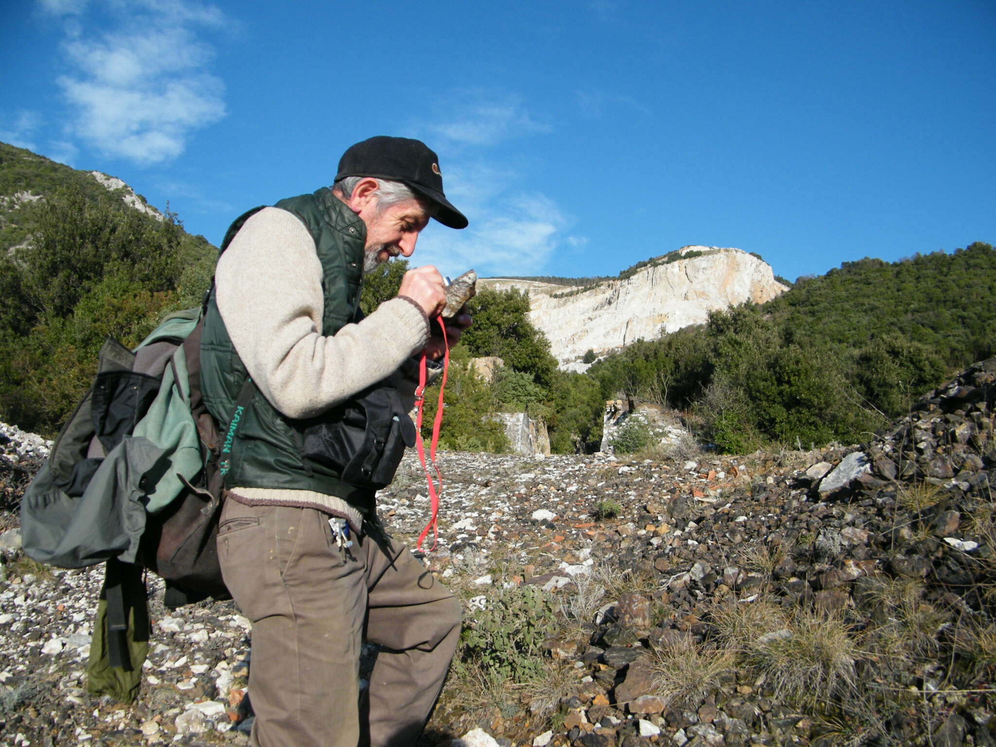 A sinistra: nannoniite, rosette di cristalli micacei fino a 1 mm su quarzo. Cetine di Cotorniano, Chiusdino, Siena. A destra: Roberto Nannoni durante una campagna di ricerche mineralogiche a Campiglia Marittima.