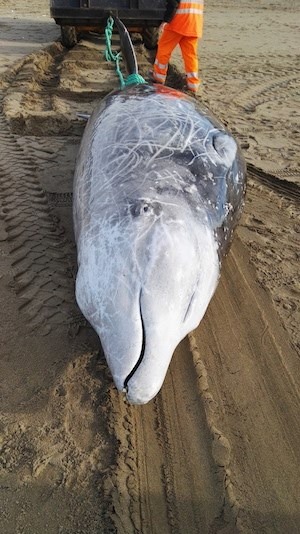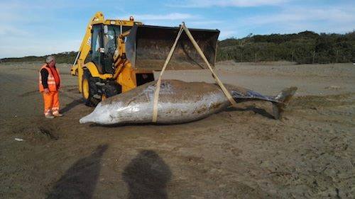 Se non avete mai sentito nominare questo simpatico cetaceo, non preoccupatevi: per quanto si tratti di una creatura relativamente comune nei nostri mari, non è facile vederne uno, perché abita acque molto profonde. Addirittura, lo zifio detiene il record tra i cetacei per profondità raggiunta (2.992 metri, con ben 135 minuti di apnea!). Il 22 dicembre 2017 il “nostro” zifio si è sfortunatamente spiaggiato a Castagneto Carducci: era lungo ben 5,38 metri per un peso complessivo di oltre 38 quintali. Sul posto sono intervenuti Università di Siena, Istituto Zooprofilattico sezione di Pisa, ARPA Toscana e la task force Nazionale nata dalla collaborazione fra Ministero dell’Ambiente e l’Università degli studi di Padova (_Cetacean stranding Emergency Response Team _CERT).